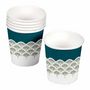 Informations Techniques : Matière : Carton Spécificités : Pratique & Efficace Lot de 10 Gobelets en Carton Forme Ronde Motif Imprimé Contenance : 23 cl Poids : 0,12 kg Couleur : Blanc & Émeraude