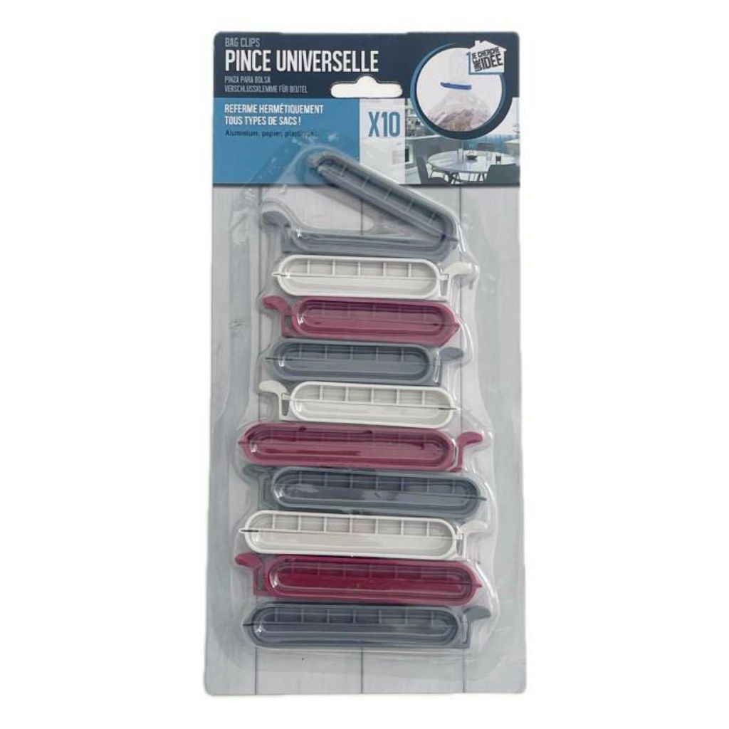 Informations Techniques : Dimensions : L. 10 x l. 1 x H. 1,7 cm Matières : Plastique & Polypropylène Spécificités : Pratique & Utile Lot de 10 Pinces Ferme Sachet Taille Universelle Poids : 0,008 kg Couleur : Multicolore (les couleurs peuvent varier en fonction de l'arrivage)