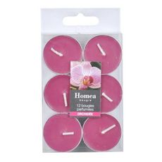 Informations Techniques : Dimensions : D. 3,5 cm Matière : Cire Spécificités : Design & Pratique Parfum d'orchidée Lot de 12 bougies Poids : 0,18 kg Couleur : Rose