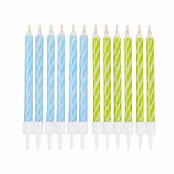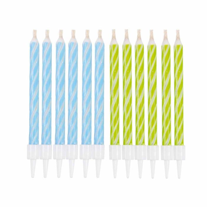 Lot de 12 Bougies d'Anniversaire Magiques 6cm Bleu & Vert