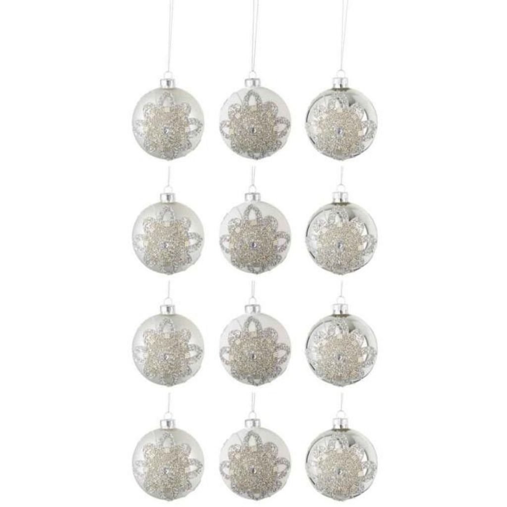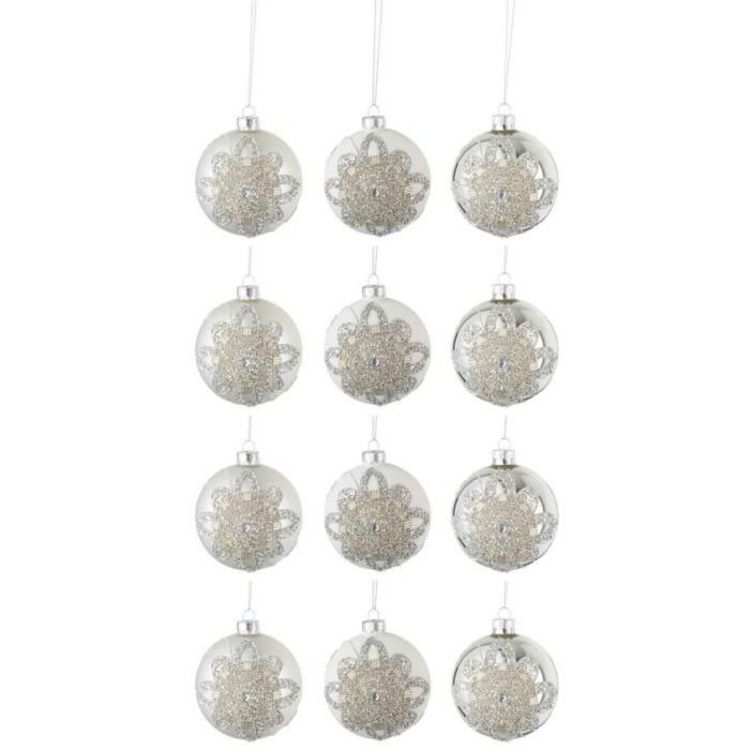 Lot de 12 Boules de Noël Ornement 8cm Argent