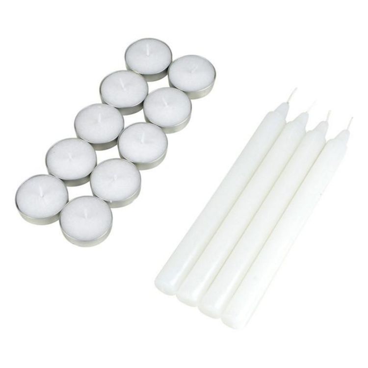 Lot de 14 Bougies Chauffe-Plat & Chandelier 20cm Blanc