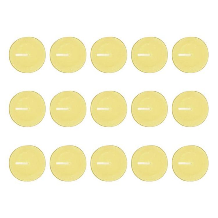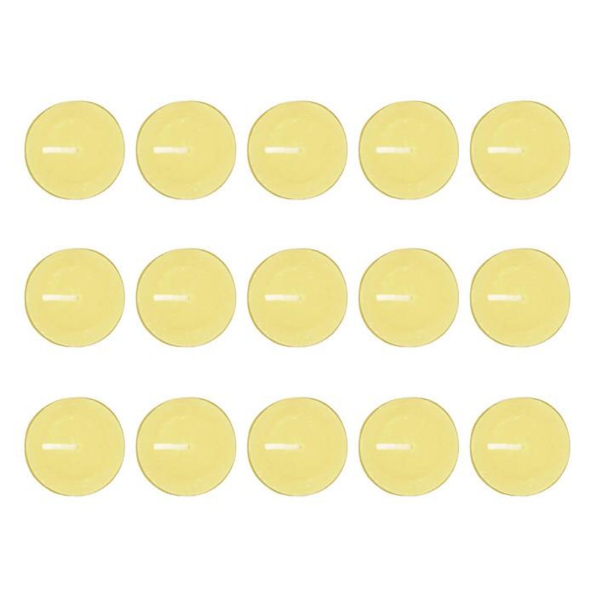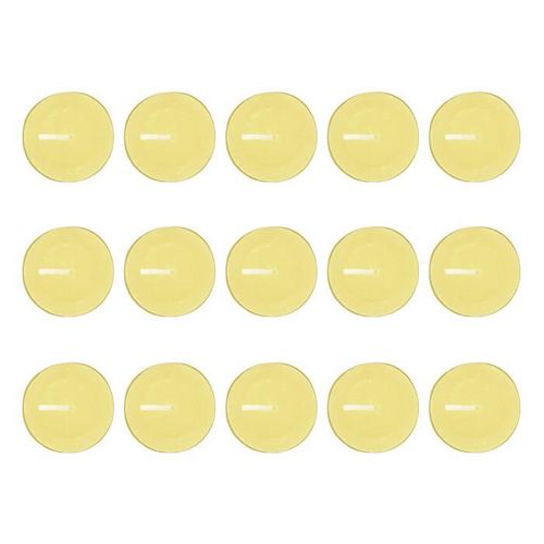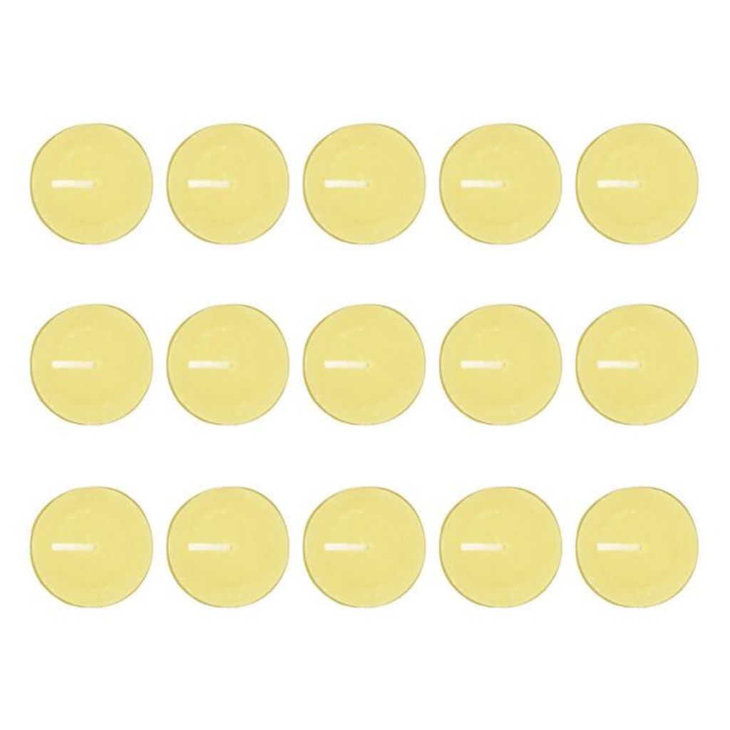 Informations Techniques : Dimensions : D. 3,8 cm Matières : Cire de Paraffine & Aluminium Spécificités : Déco & Utile Lot de 15 bougies chauffe-plat Senteur : Citronnelle Capacité : 11,2 g Durée de combustion : 4 heures Poids : 0,01 kg Couleur : Jaune
