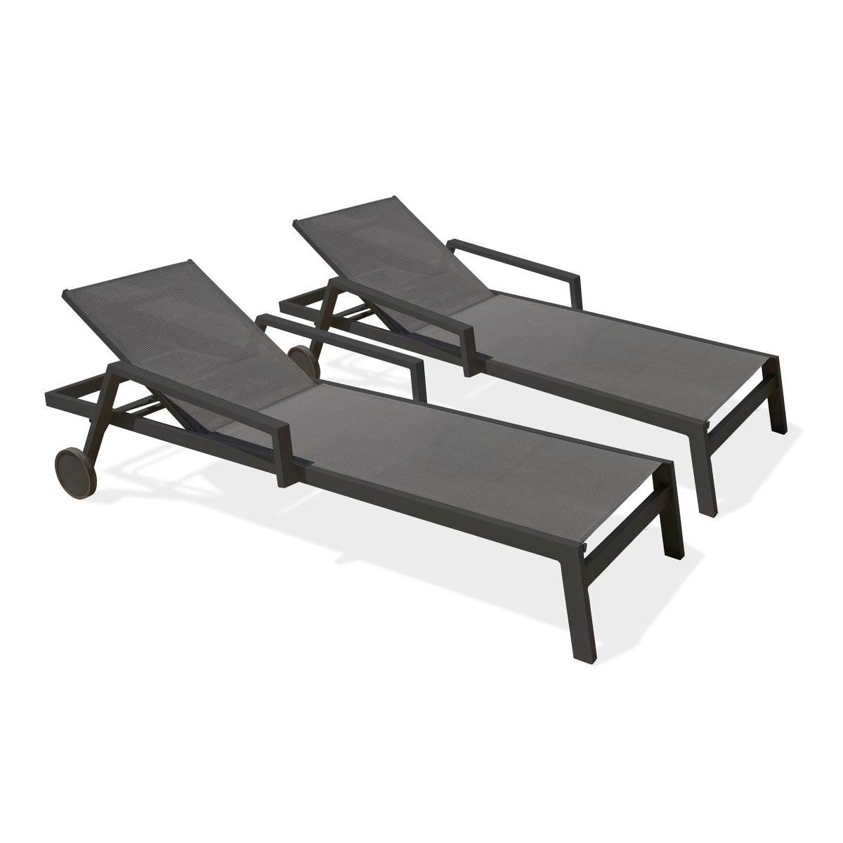 Lot de 2 Bains de Soleil Multi-Positions Ibiza 210cm Gris Anthracite
