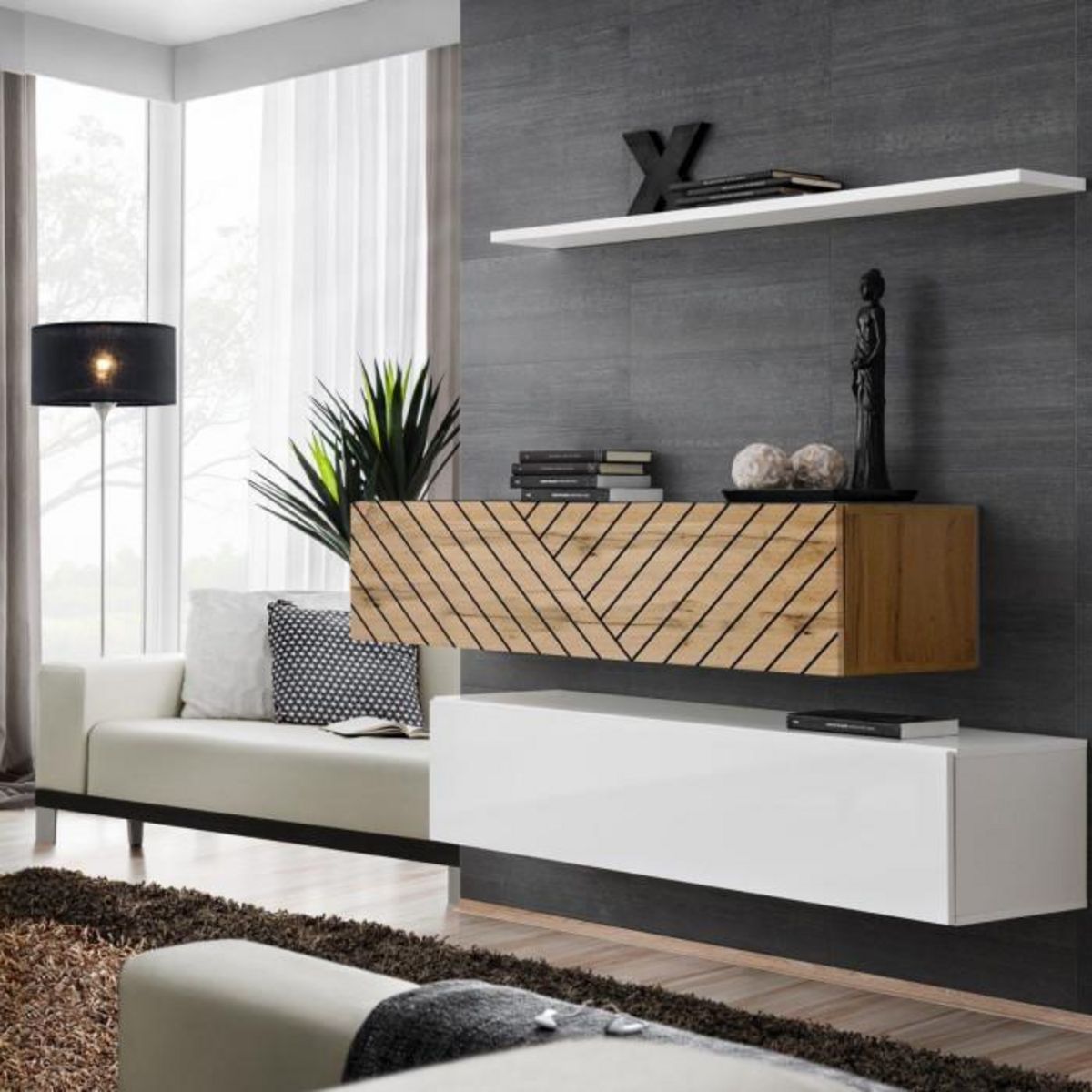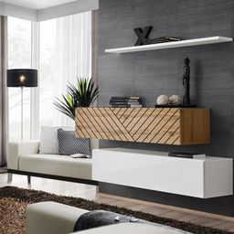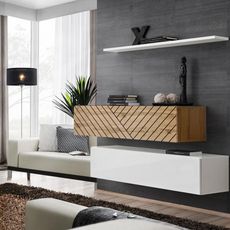 Lot de 2 Bancs Muraux & Étagère Switch SBII 130cm Blanc & Naturel Rainuré