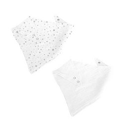 Informations Techniques : Dimensions : L. 41 x l. 16 cm Matière : 100% Gaze de Coton Spécificités : Pratique & Ajustable Lot de 2 Bavoirs Forme Bandana Motif Imprimé Poids : 0,028 kg Couleur : Blanc