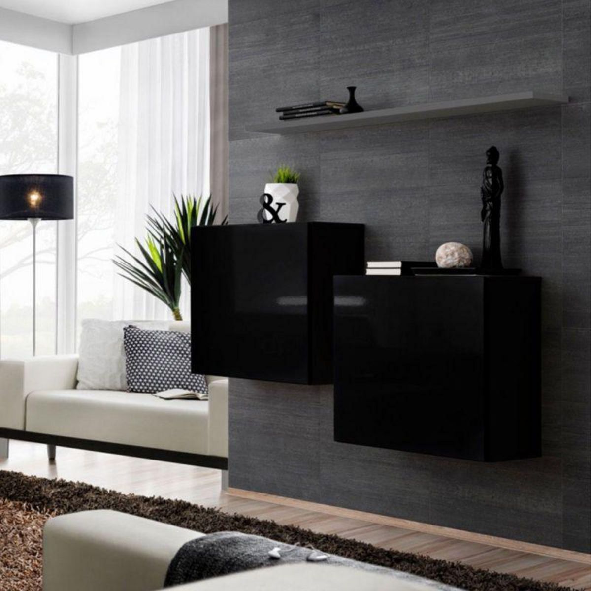 Lot de 2 Blocs & Étagère Switch SBI 130cm Noir & Gris