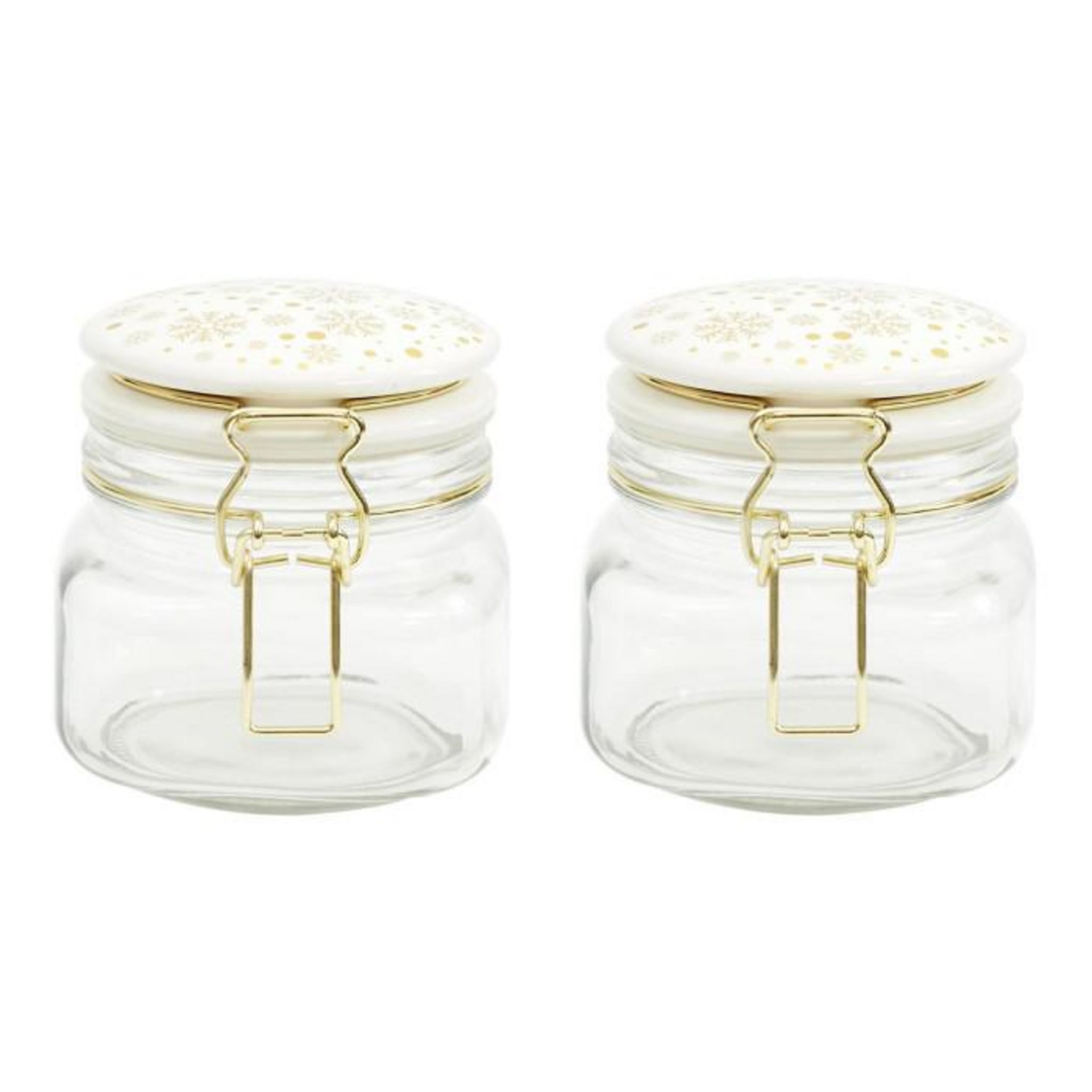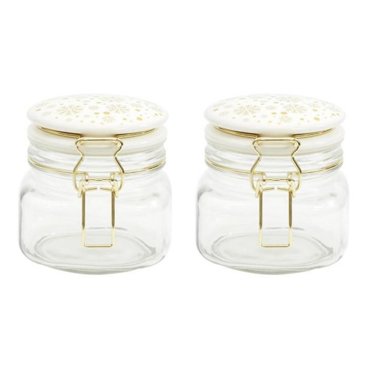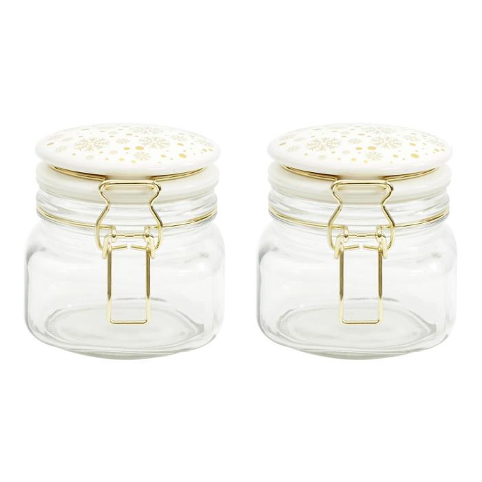 Lot de 2 Bocaux en Verre Flocon 13cm Blanc & Doré