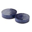 Informations Techniques : Dimensions : Taille 1 : D. 20,5 x H. 5 cm Taille 2 : D. 24 x H. 6 cm Matière : 100% Métal Spécificités : Élégant & Robuste Lot de 2 boîtes rondes Imprimé fantaisie Poids : 0,9 kg Couleur : Bleu