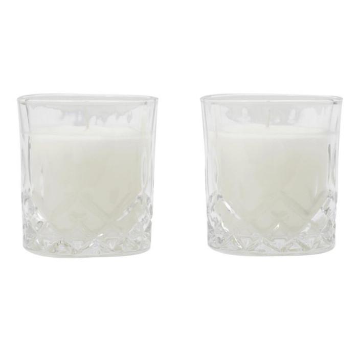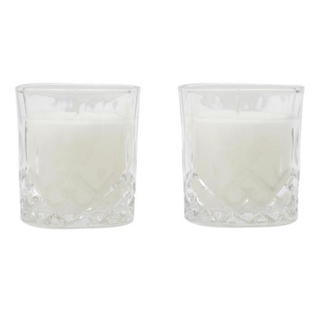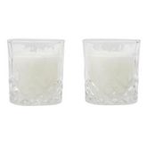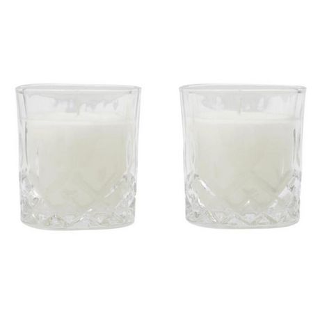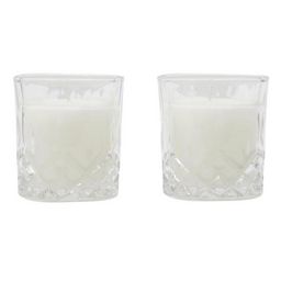 Informations Techniques : Dimensions : L. 19,5 x l. 12 x H. 9,5 cm Matières : Paraffine & Verre Spécificités : Pratique & Utile Lot de 2 Bougies Parfumées Forme Ronde Design Verre à Whisky Senteur : Ambre Contenance : 150 g % de Parfum : 2% Type de Mèche : Coton Durée de Combustion : 18 heures Poid