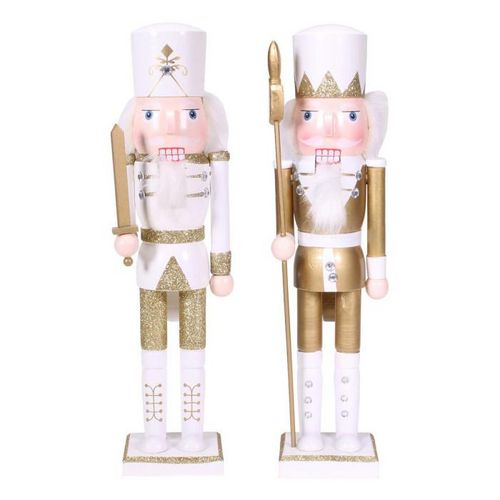 Informations Techniques : Dimensions : L. 10 x l. 8 x H. 35,5 cm Matière : Bois Spécificités : Déco & Festif Lot de 2 casse-noisettes Poids : 0,88 kg Couleur : Blanc & Doré