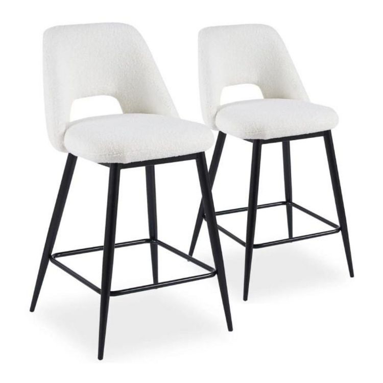 Lot de 2 Chaises de Bar Bouclette 92cm Crème & Noir