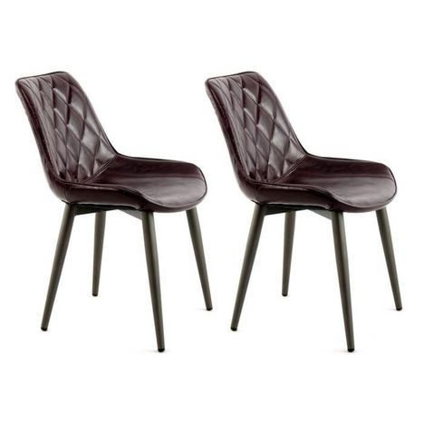 Informations Techniques : Dimensions : L. 53 x l. 60 x H. 81,5 cm Hauteur d'Assise : 46 cm Matières : Revêtement : Cuir Synthétique & Mousse Pieds : Métal laqué Spécificités : Tendance & Moderne Lot de 2 Chaises design Style Rétro & Vintage Forme Bombée Assise Confortable Structure en Métal Capacit