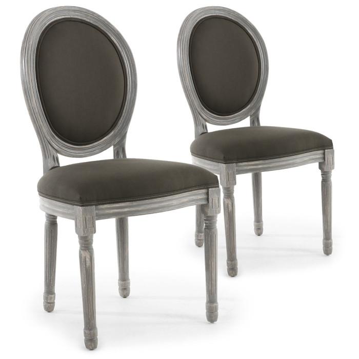 Lot de 2 Chaises Médaillon Quing Tissu Gris