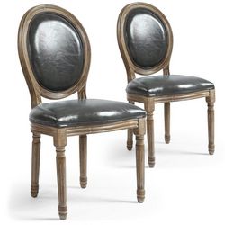 Informations Techniques : Dimensions : Chaise: L. 49 x P. 46 x H. 96 cm Assise : H. 49 cm Matières : Bois & Polyuréthane Spécificités : Design vintage Assise & Dossier rembourrés Livré par lot de 2 chaises Entretien facile Convient pour un usage intérieur uniquement Nombre de colis : 1 Poids : 16 kg