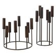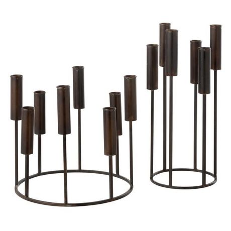Informations Techniques : Dimensions : Taille 1 : L. 17,5 x l. 16 x H. 37 cm Taille 2 : L. 29,5 x l. 29,5 x H. 26,7 cm Matière : 100% Métal Spécificités : Moderne & Déco Lot de 2 chandeliers ronds Pour 14 bougies piliers Poids : 1,81 kg Couleur : Noir