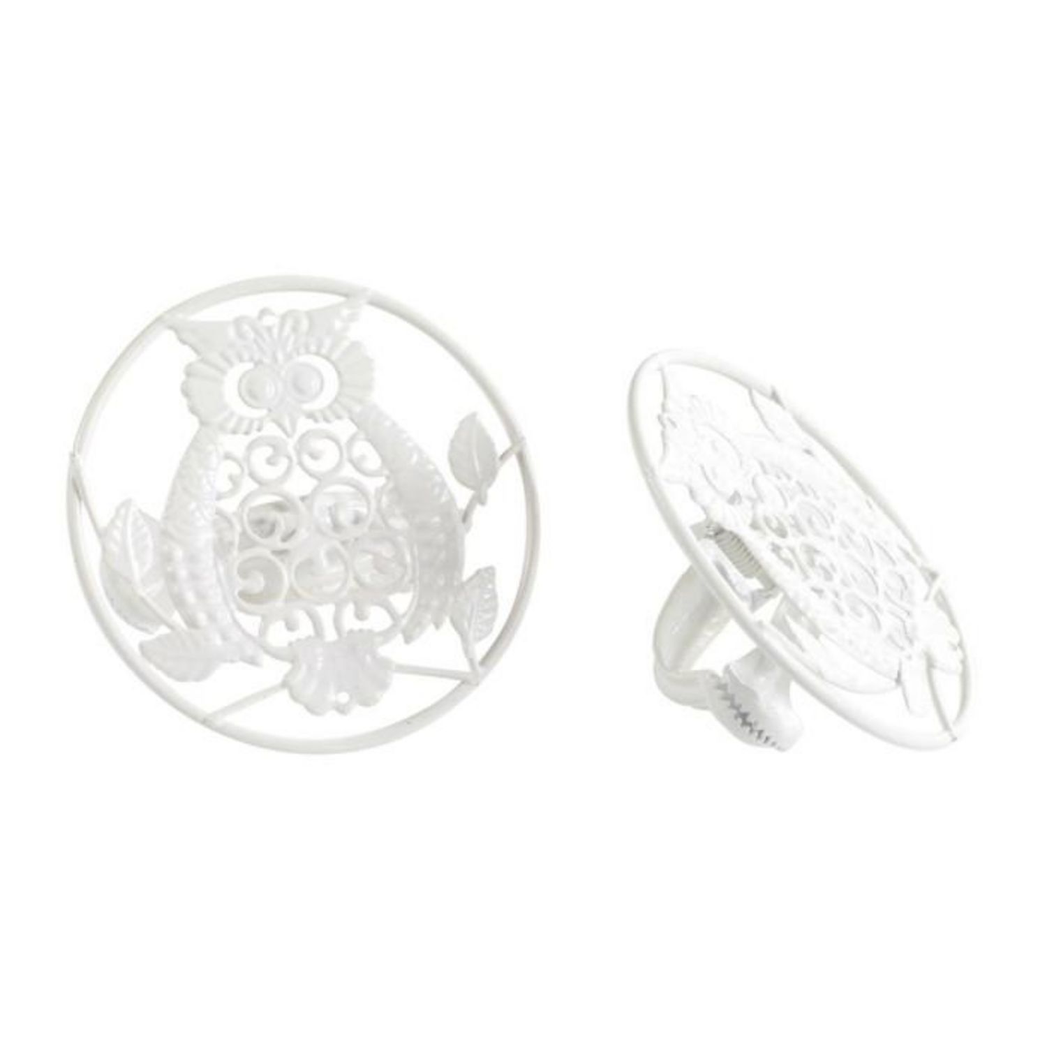 Informations Techniques : Dimensions : D. 8 cm Matière : 100 % Fer Spécificités : Design & Pratique Embrasse pince Design hibou Simple d'utilisation Poids : 0,070 kg Couleur : Blanc