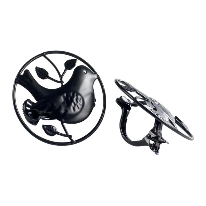 Informations Techniques : Dimensions : D. 8 cm Matière : 100 % Fer Spécificités : Design & Pratique Lot de 2 embrasses pince Design oiseau Simple d'utilisation Poids : 0,070 kg Couleur : Noir