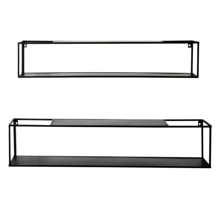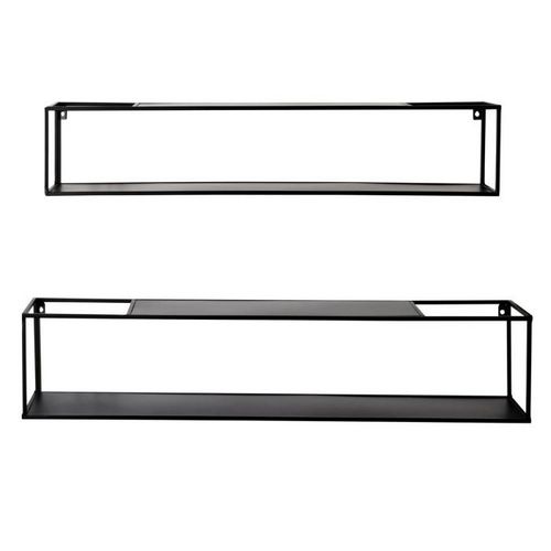 Informations Techniques : Dimensions : S : L. 85 x l. 17 x H. 17 cm L : L. 95 x l. 20 x H. 20 cm Matières : Acier & Métal Spécificités : Tendance & Industriel Étagères Murales Design Vendu par lot de 2 2 tailles différentes Livré Monté Poids : 4,14 kg Couleur : Noir