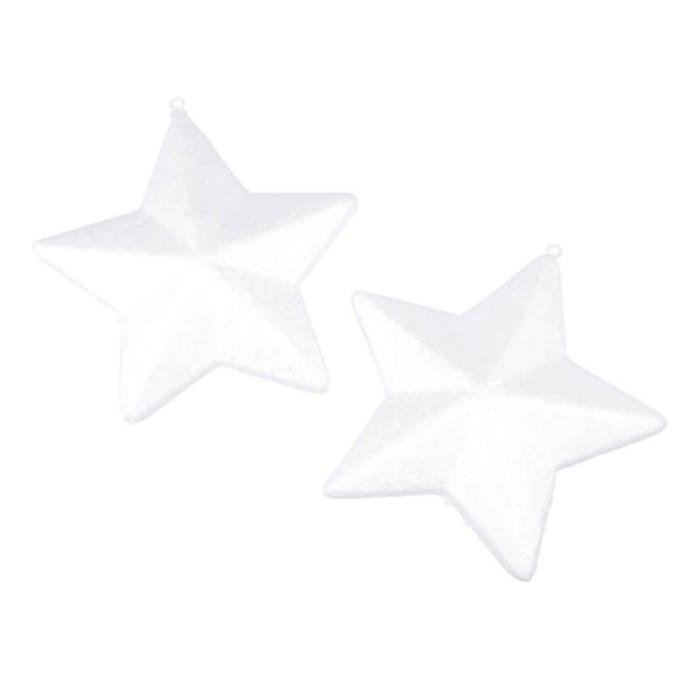 Informations Techniques : Dimensions : L. 15 cm Matière : Polystyrène Spécificités : Tendance & Déco Lot de 2 Étoiles de Noël A Poser ou à Suspendre Couleur : Blanc