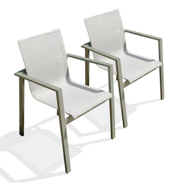 Lot de 2 Fauteuils de Jardin Empilables Miami 84cm Kaki