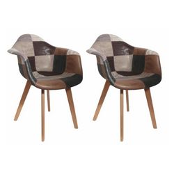 Lot de 2 Fauteuils Déco Patchwork 84cm Marron