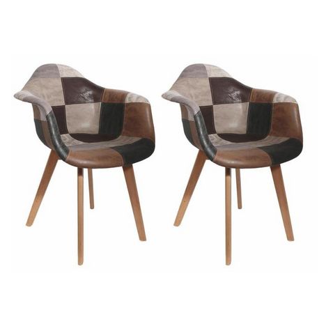 Informations Techniques : Dimensions : L. 62 x l. 59 x H. 84 cm Matière : Bois Spécificités : Pratique & Utile Lot de 2 chaises déco Style Patchwork Facile d'entretien & d'utilisation Couleur : Marron