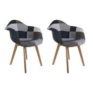 Lot de 2 Fauteuils Déco Patchwork 85cm Bleu Gris