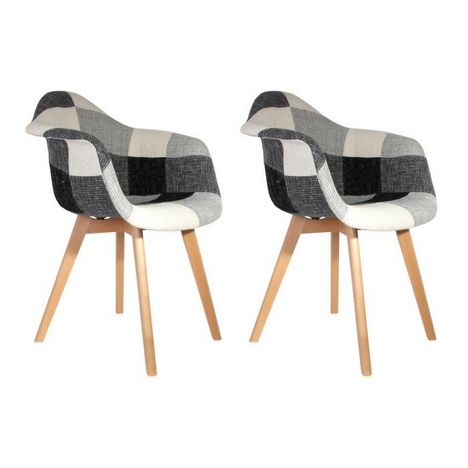 Informations Techniques : Dimensions : L. 62 x l. 60,5 x H. 83,5 cm Assise : H. 50,8 cm Matières : Revêtement : Polyester Rembourrage : Mousse de Polyuréthane Structure : Polypropylène Piètement : Bois (Hêtre) Spécificités : Pratique & Utile Lot de 2 chaises déco Motif Patchwork Style Scandinave À m