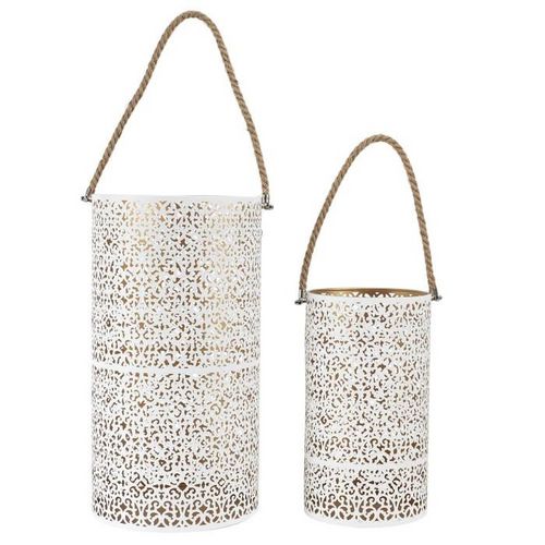 Lot de 2 Lanternes Déco Ajouré 39cm Blanc
