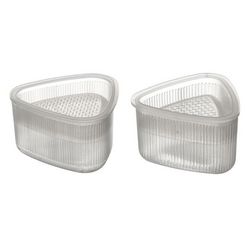Informations Techniques : Dimensions : Taille 1 : L. 6,5 x H. 4 cm Taille 2 : L. 7,5 x H. 4 cm Matière : 100% Polypropylène Spécificités : Pratique & Utile Lot de 2 moules à riz onigiri Recette incluse Poids : 0,05 kg Couleur : Transparent