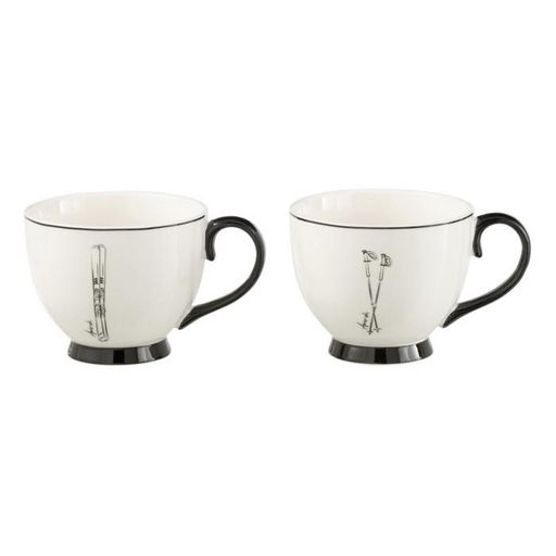 Informations Techniques : Dimensions : L. 13,5 x l. 11 x H. 8,8 cm Matière : 100% Céramique Spécificités : Moderne & Utile Lot de 2 mugs Motifs skis et bâtons de ski Inscriptions Après-ski Contenance : 45 cl Compatibles : Lave-vaisselle, four et micro-ondes Poids : 0,63 kg Couleur : Noir & Blanc