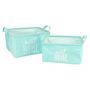 Informations Techniques : Dimensions : Taille 1 : L. 28 x l. 20 x H. 12.5 cm Taille 2 : L. 32 x l. 25 x H. 16.5 cm Matière : Canvas Spécificités : Design & Pratique Vendu en lot de 2 2 Tailles différentes Poids : 0,38 kg Couleur : Vert Menthe