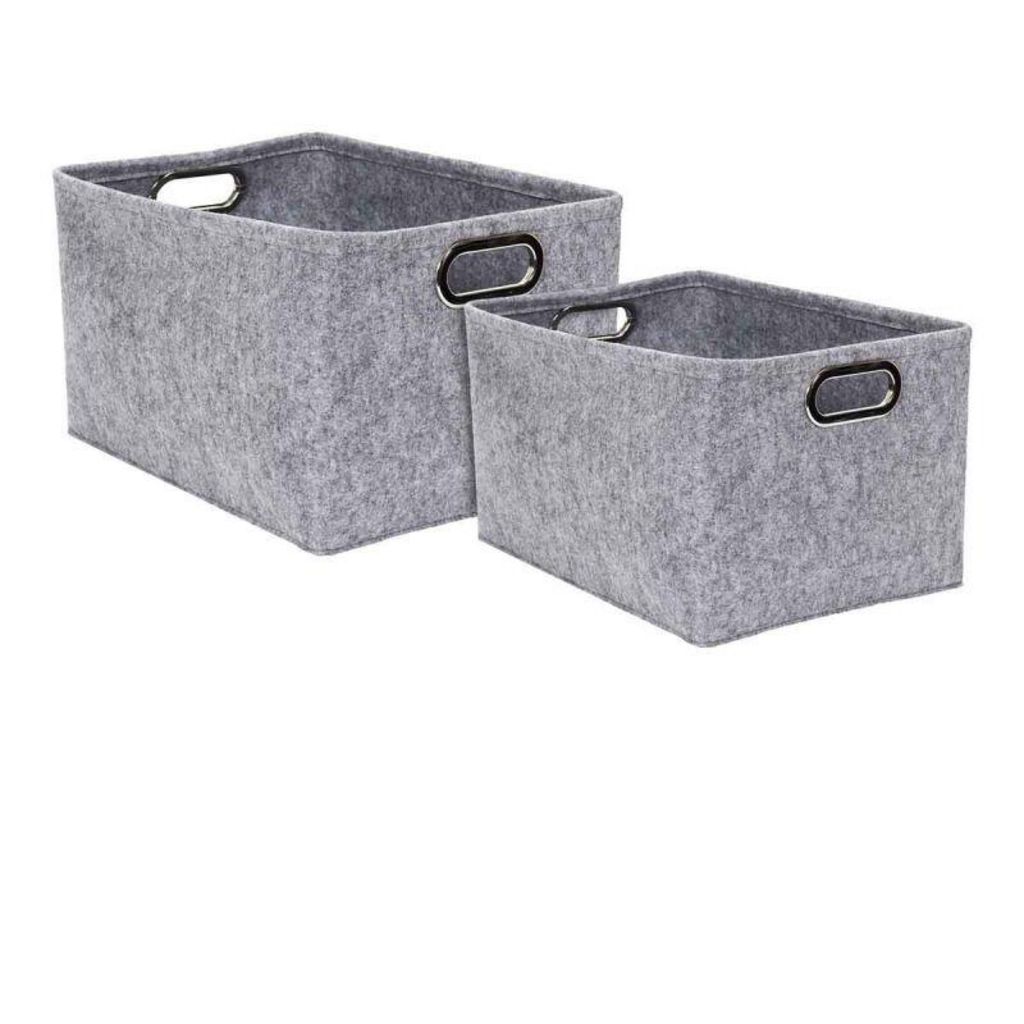 Lot de 2 Paniers de Rangement Anses 40cm Gris
