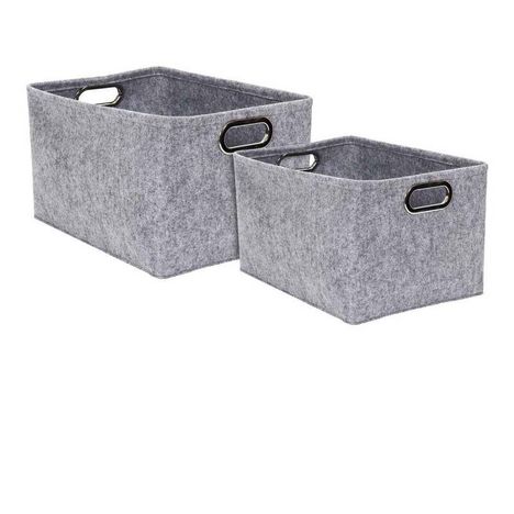Informations Techniques : Dimensions : Taille 1 : L. 30 x l. 24 x H. 40 cm Taille 2 : L. 40 x l. 30 x H. 24 cm Matière : Polyester Spécificités : Pratique & Fonctionnel Lot de 2 Paniers de Rangement Forme Rectangulaire Avec Anses Poids : 0,91 kg Couleur : Gris