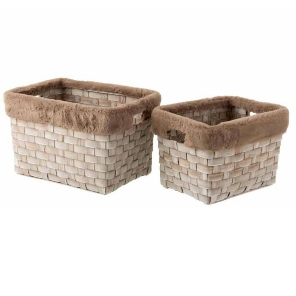 Lot de 2 Paniers Imitation Fourrure 42cm Marron