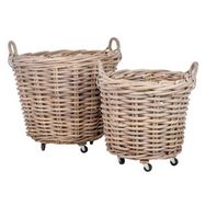 Lot de 2 Paniers Ronds Anses & Roulettes 82cm Naturel