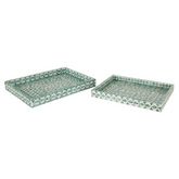 Informations Techniques : Dimensions : L. 41 x l. 31 x H. 4 cm Matières : 50% Céramique & 50% Papier Spécificités : Tendance & Moderne Lot de 2 Plateaux de Service Forme Rectangulaire Motif Imprimé Couleur : Bleu Clair