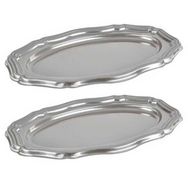 Informations Techniques : Dimensions : L. 58 x l. 30 cm Matière : PET Spécificités : Pratique & Utile Lot de 2 Plateaux Déco Entretien facile Pratique d'utilisation Style Louis XV Jetable Couleur : Argent