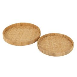Informations Techniques : Dimensions : Taille 1 : D. 40 x H. 4,5 cm Taille 2 : D. 45 x H. 5,5 cm Matières : 50% Bambou, 30% Bois (Sapin) & 20% Cannage Spécificités : Déco & Utile Lot de 2 plateaux ronds Poids : 1,41 kg Couleur : Naturel
