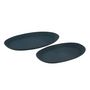 Informations Techniques : Dimensions : Taille 1 : L. 45,5 x l. 27,5 x H. 3 cm Taille 2 : L. 54,5 x l. 33,5 x H. 3 cm Matière : 100% Métal Spécificités : Coloré & Utile Lot de 2 plateaux Forme ovale Poids : 1,8 kg Couleur : Bleu
