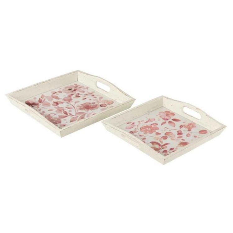Lot de 2 Plateaux Motif Fleurs 41cm Rose & Blanc