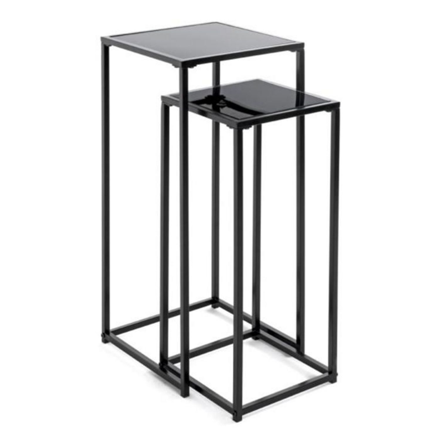 Informations Techniques : Dimensions : Taille 1 : L. 25 x l. 25 x H. 60 cm Taille 2 : L. 30 x l. 30 x H. 70 cm Épaisseur du Verre : 5 mm Matières : Métal & Verre Trempé Spécificités : Pratique & Tendance Lot de 2 Sellettes Forme Carrée Plateau en Verre Trempé Effet Laqué Livré non monté Nombre de