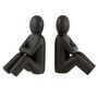 Informations Techniques : Dimensions : L. 32,5 x l. 9,5 x H. 23,5 cm Matière : Résine Spécificités : Pratique & Utile Lot de 2 Serre-Livres Design Bonhommes Assis Poids : 2,05 kg Couleur : Noir