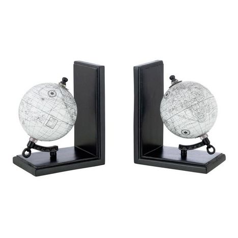 Lot de 2 Serre-Livres en Bois Globe 18cm Noir & Gris