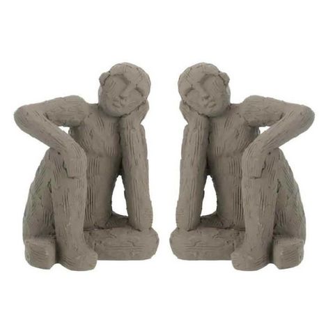 Informations Techniques : Dimensions : L. 19 x l. 15,5 x H. 25 cm Matière : Ciment Spécificités : Tendance & Déco Lot de 2 Serre-Livres A Poser Design Personnages Assis Convient à un Usage Extérieur Poids : 3,74 kg Couleur : Gris