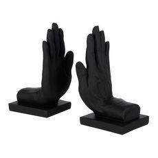 Informations Techniques : Dimensions : L. 13 x l. 11,5 x H. 22 cm Matière : Polyrésine Spécificités : Déco & Utile Lot de 2 serre-livres En forme de main Poids : 0,81 kg Couleur : Noir