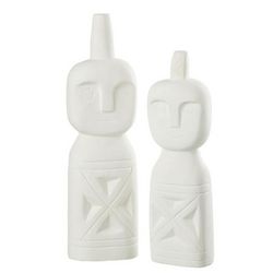 Lot de 2 Statues Déco Personnage Africain 40cm Blanc