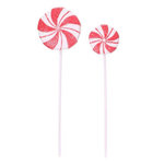 Informations Techniques : Dimensions : Taille 1 : L. 10,7 x l. 2,5 x H. 47,7 cm Taille 2 : L. 15,5 x l. 3,5 x H. 53,5 cm Matière : PVC Spécificités : Festif & Déco Lot de 2 sucettes de Noël Forme ronde Poids : 0,03 kg Couleur : Rouge & Blanc