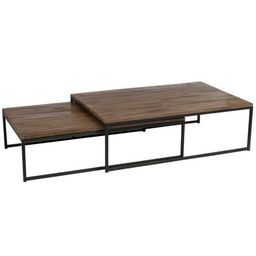 Informations Techniques : Dimensions : L. 120 x l. 80 x H. 38 cm Matières : (60%) Bois Recyclé & (40%) Fer Spécificités : Lot de 2 Table Basse Design Possibilité de les combiner Plateau irrégulier Effet vieilli Poids : 50 kg Couleur : Naturel & Noir